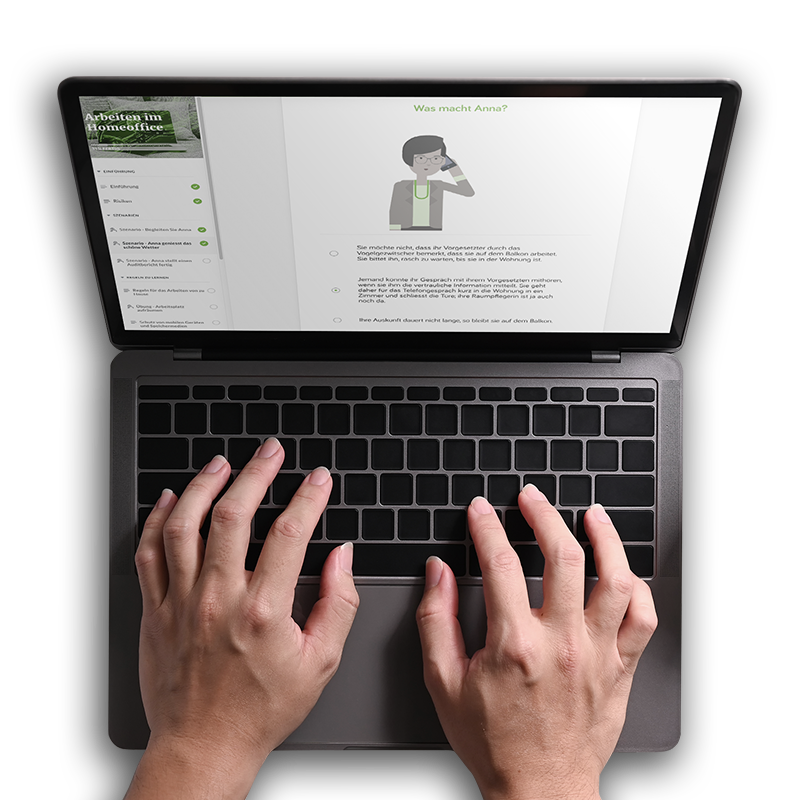 Unsere Standardschulungen bieten moderne, interaktive Module mit storybasiertem Ansatz, optimiert für alle Geräte. Jede Lerneinheit dauert nur wenige Minuten für den effizienten Wissenstransfer.